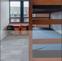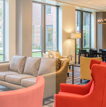 Individual rooms feature large windows with courtyard, campus, or river views that make these small intimate spaces feel welcoming and comfortable.