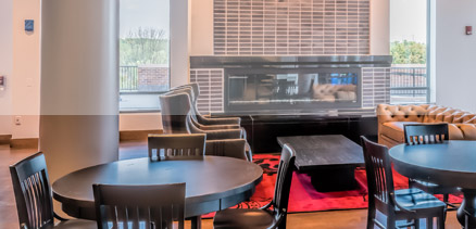 Resident lounges, reading nooks, meeting rooms, an outdoor terrace and a café with fireplace and coffee bar have all been designed to provide places for thoughtful conversation and socialization.